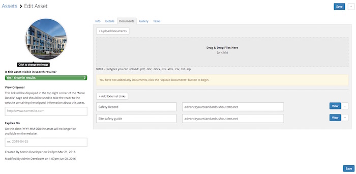 - Document and link section for uploading PDFs, and links files in your cloud storage or website.